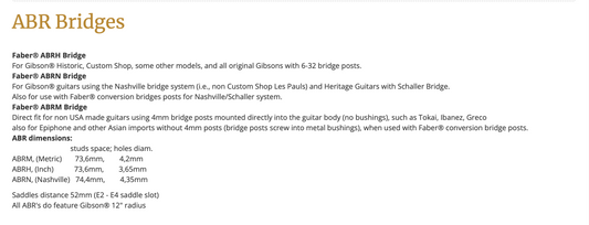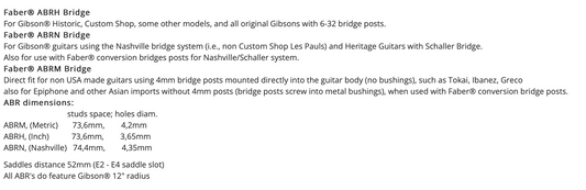 Faber ABRl ABR style Bridge - fits all model guitars