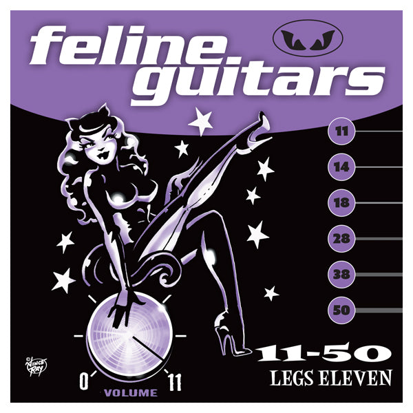 We tweaked the classic 11 set favoured by players of short scale guitars or those favouring a firmer feel. We increased the gauge of the low string to a 0.050" gauge which allows a more balanced feel and also facilitates drop D tuning without the string being as floppy.