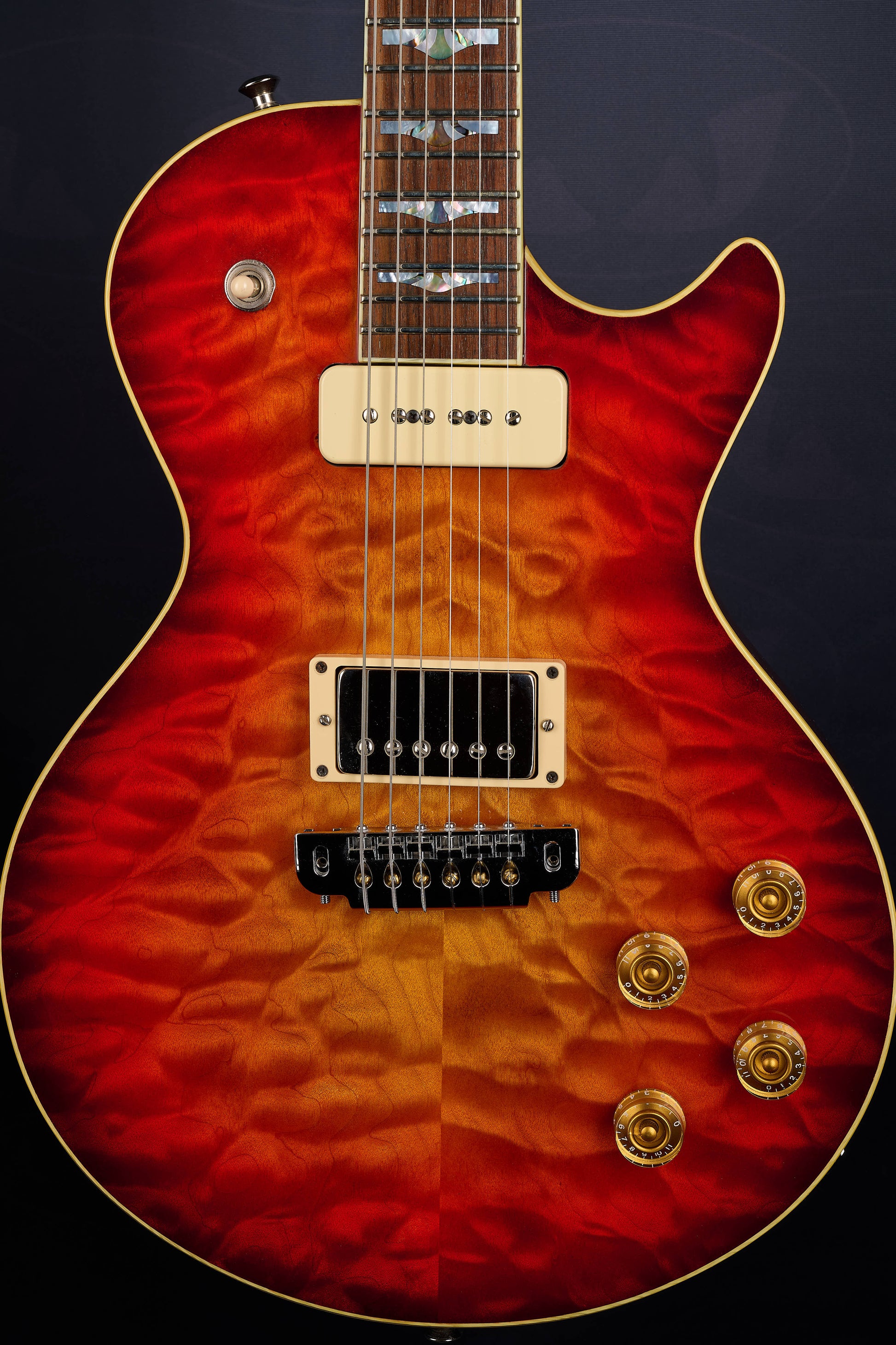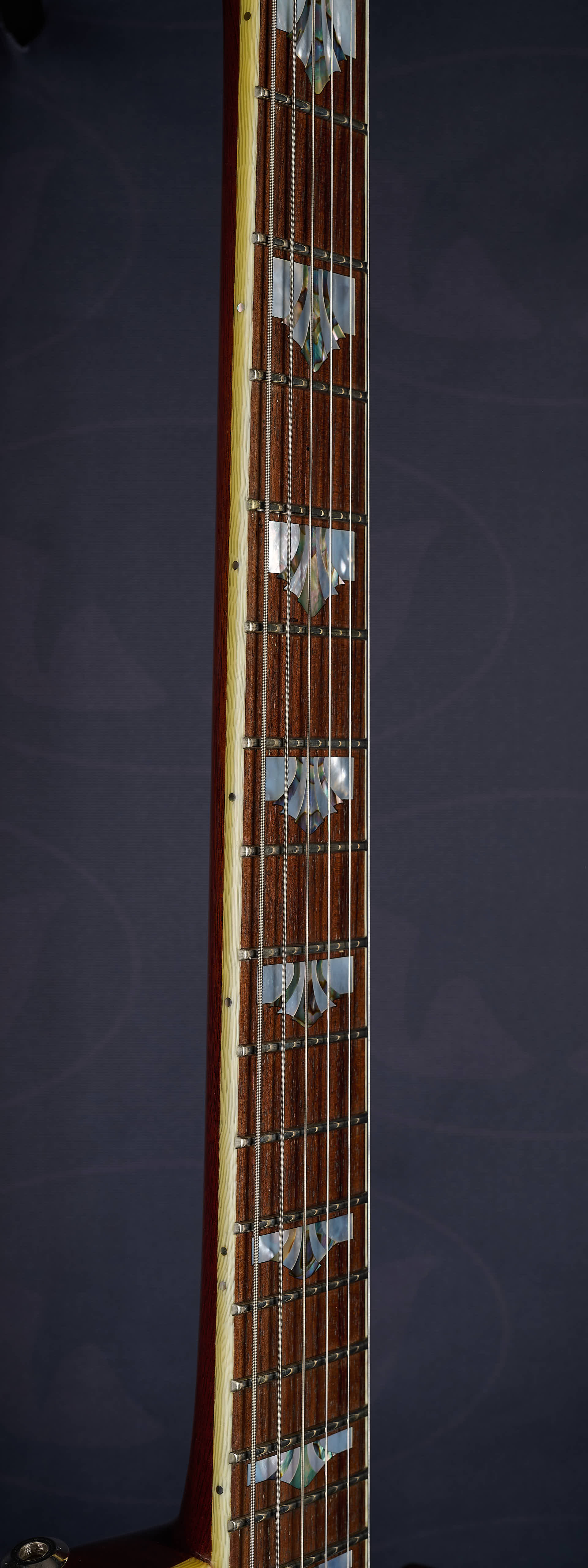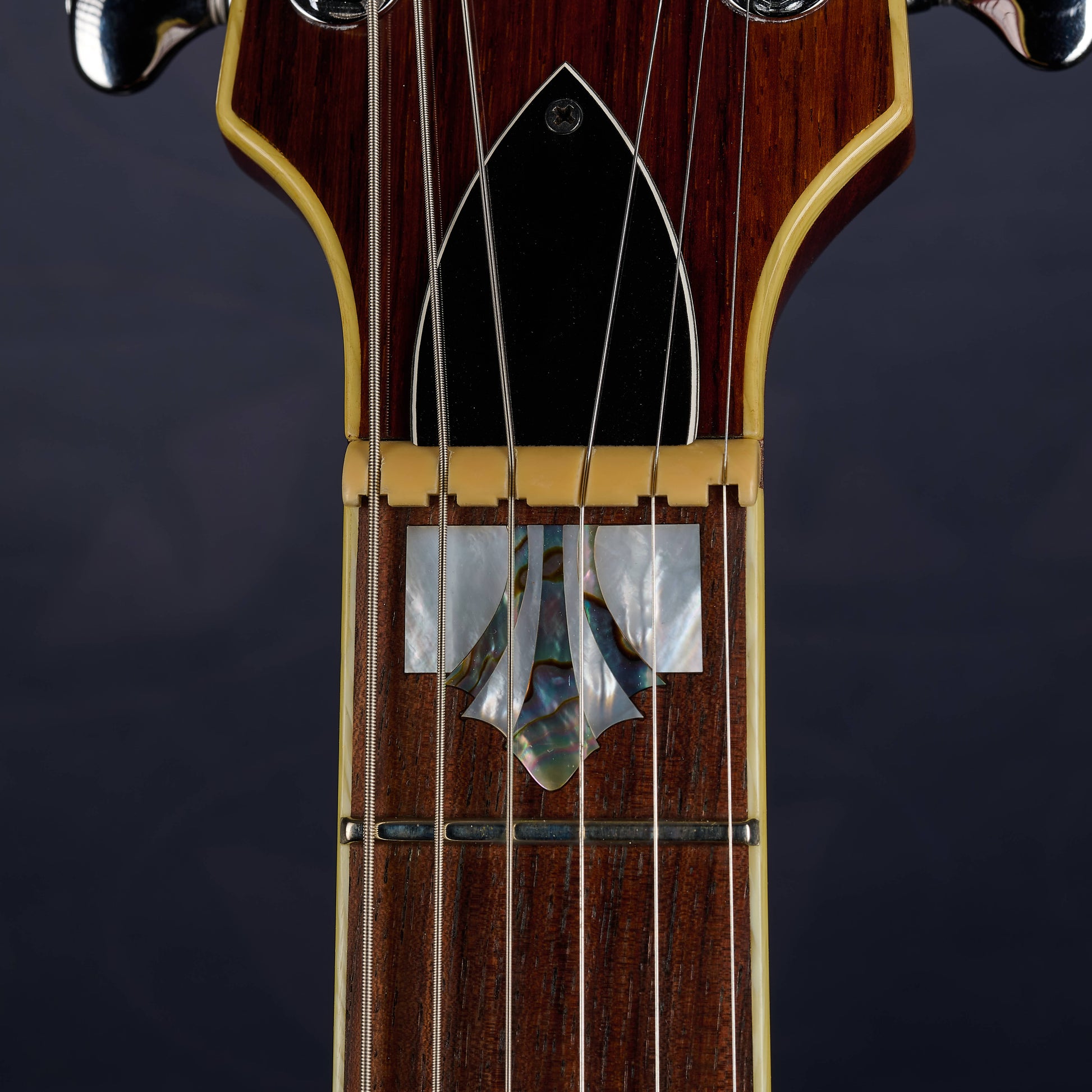 - Rosewood headstock fascia with pearl inlay