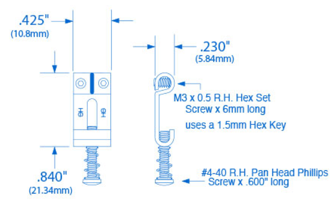 On traditional Strat saddles, the height screws feed in (and adjust) from the top of the saddle, leaving them protruding out of the top where they inevitably shred your hands. On Highwood saddles, the height screws feed in from the bottom so they never extend over the top of the saddle—all you'll feel is the smooth polished bridge under your palm.