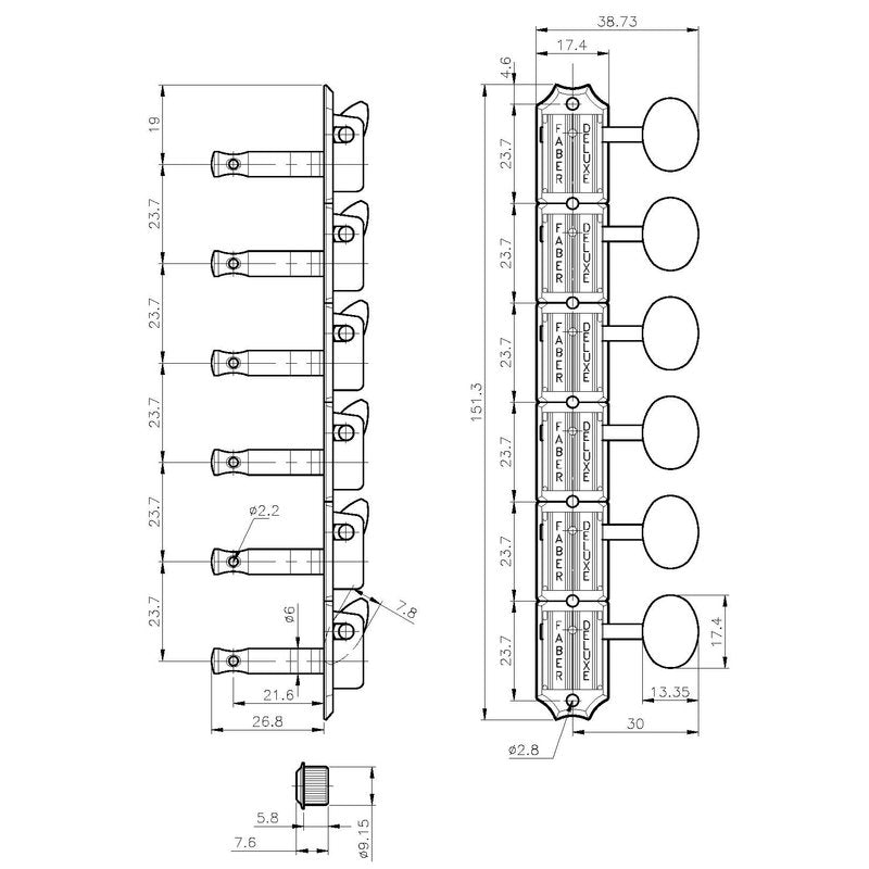 Faber FKT6L-NG Kluson 6 in line tuners with vintage push in bushing