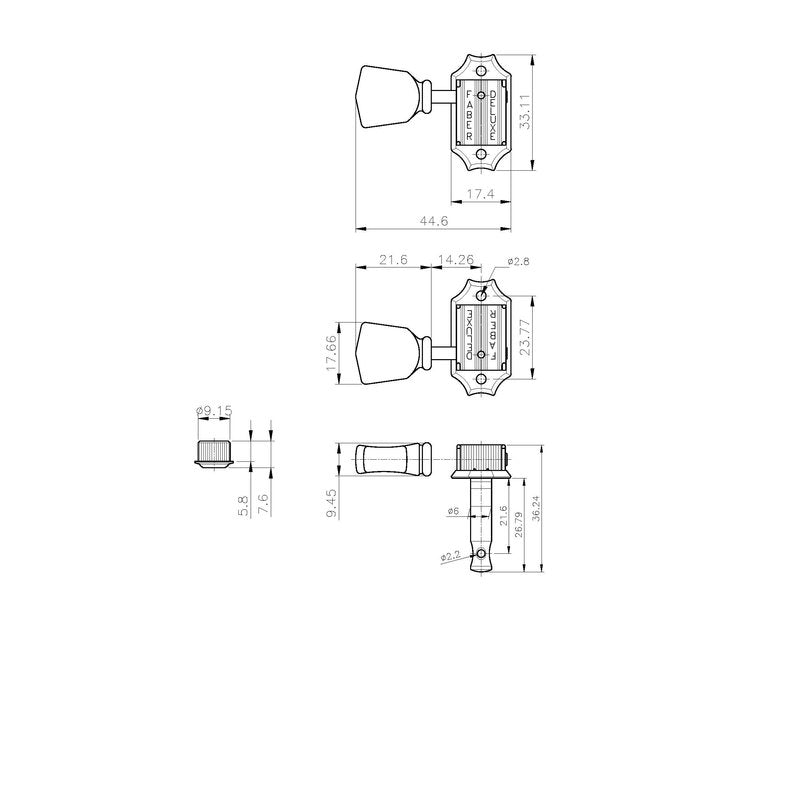 Faber Kluson Style 3+3 tuners with 50's round knob and push in bushing