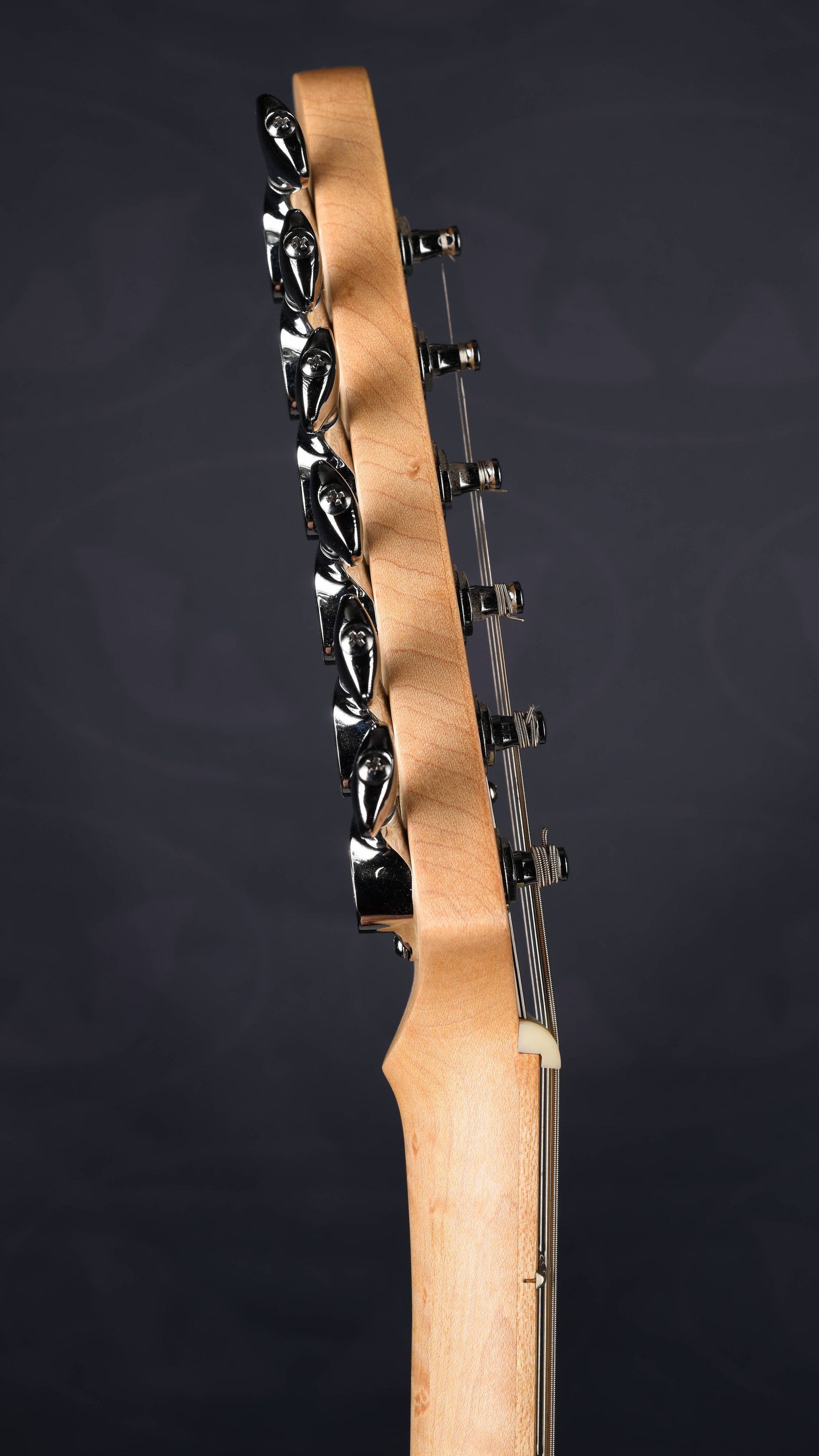 - One of our S-type guitars with a difference - a leanback headstock on a 3 piece neck for extra rigidity
