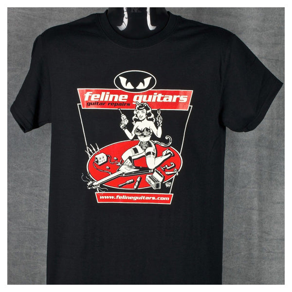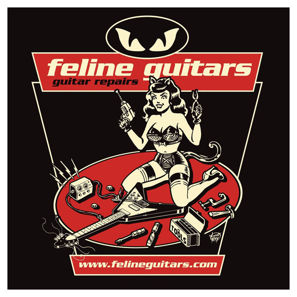 Vince Ray designed this based on an idea I had - A 'cat-woman' figure repairing a Flying V guitar.