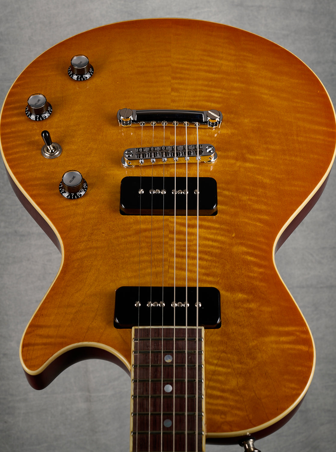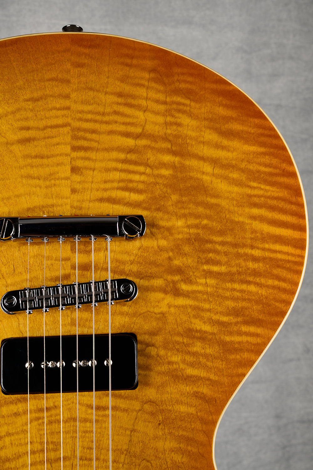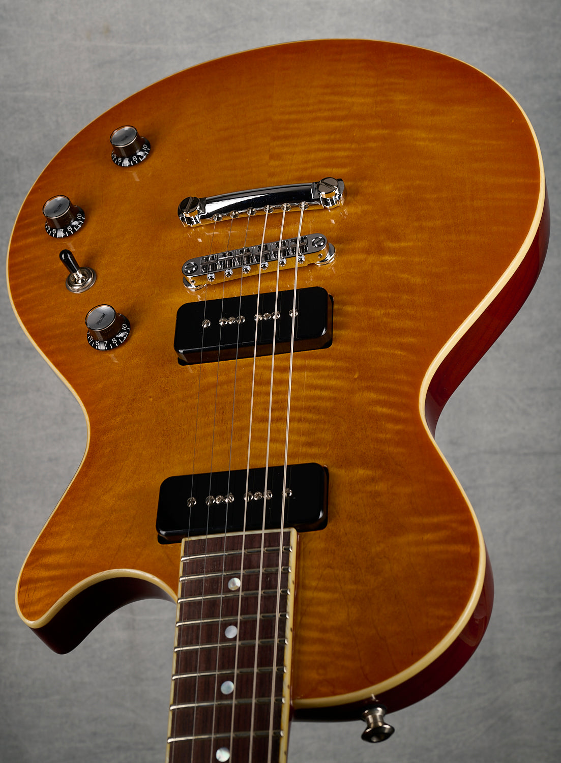 - Mahogany Body with separate flat flame maple Top