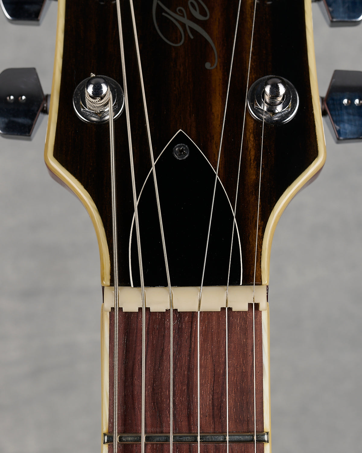 - Ebony headstock fascia with pearl inlay