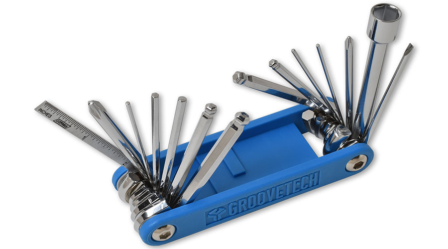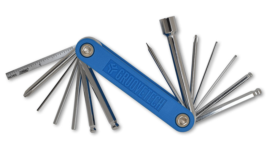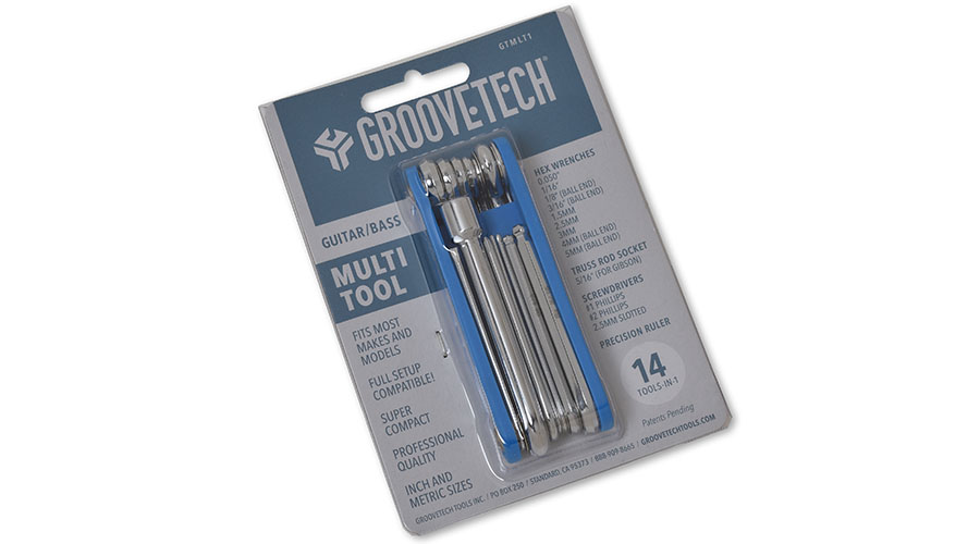 Groovegear's second-generation guitar/bass multi-tool is a powerhouse of capability! There’s inch and metric hex wrenches to address virtually any make or model of guitar and bass.