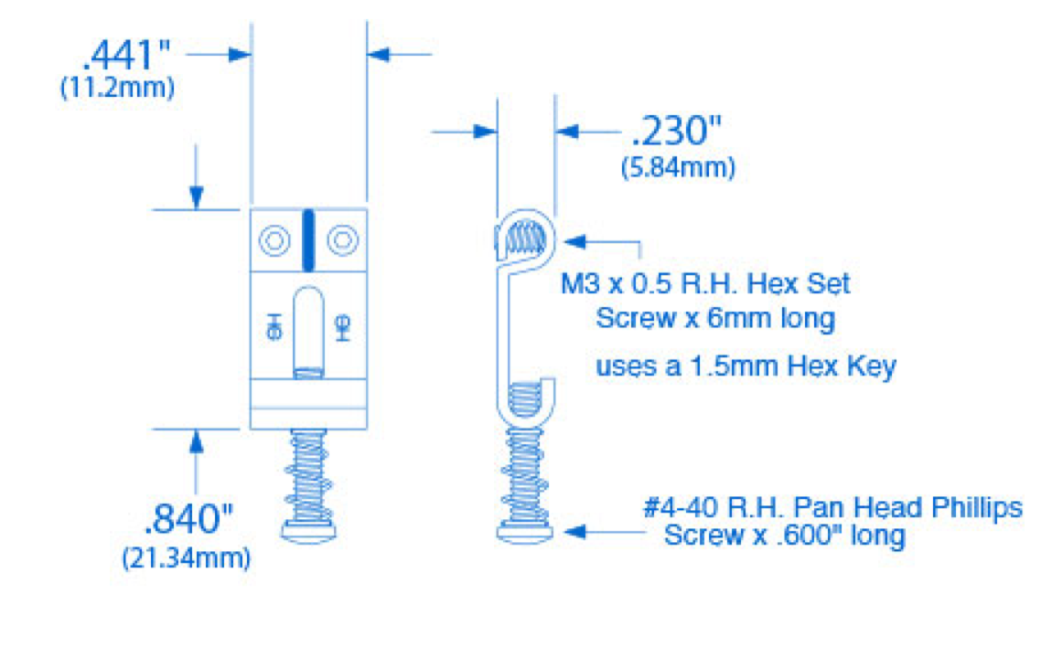 On traditional Strat saddles, the height screws feed in (and adjust) from the top of the saddle, leaving them protruding out of the top where they inevitably shred your hands. On Highwood saddles, the height screws feed in from the bottom so they never extend over the top of the saddle—all you'll feel is the smooth polished bridge under your palm.