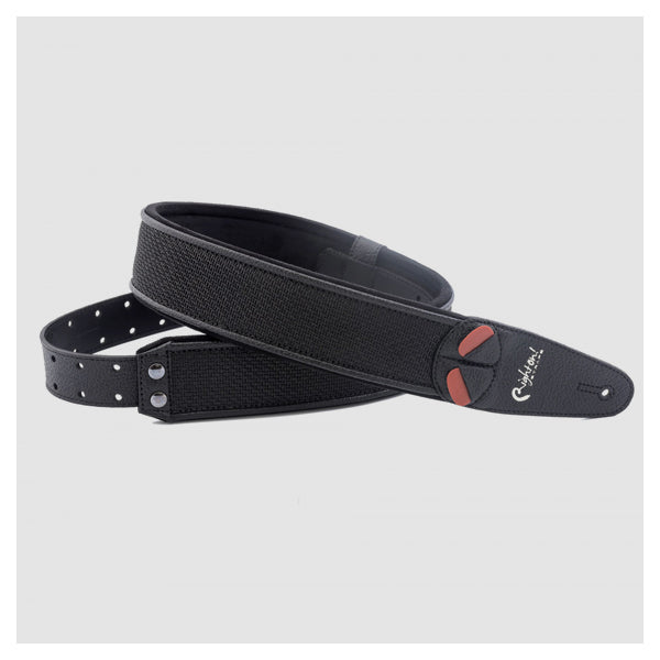 The Mojo 40W Black guitar strap is a guitar strap inspired by classic amp design. Mojo Amp Guitar Straps are fret cloth straps representing a new pinnacle in gathering inspiration from musicians and finding ways to meet their needs with functionality and cool new products.