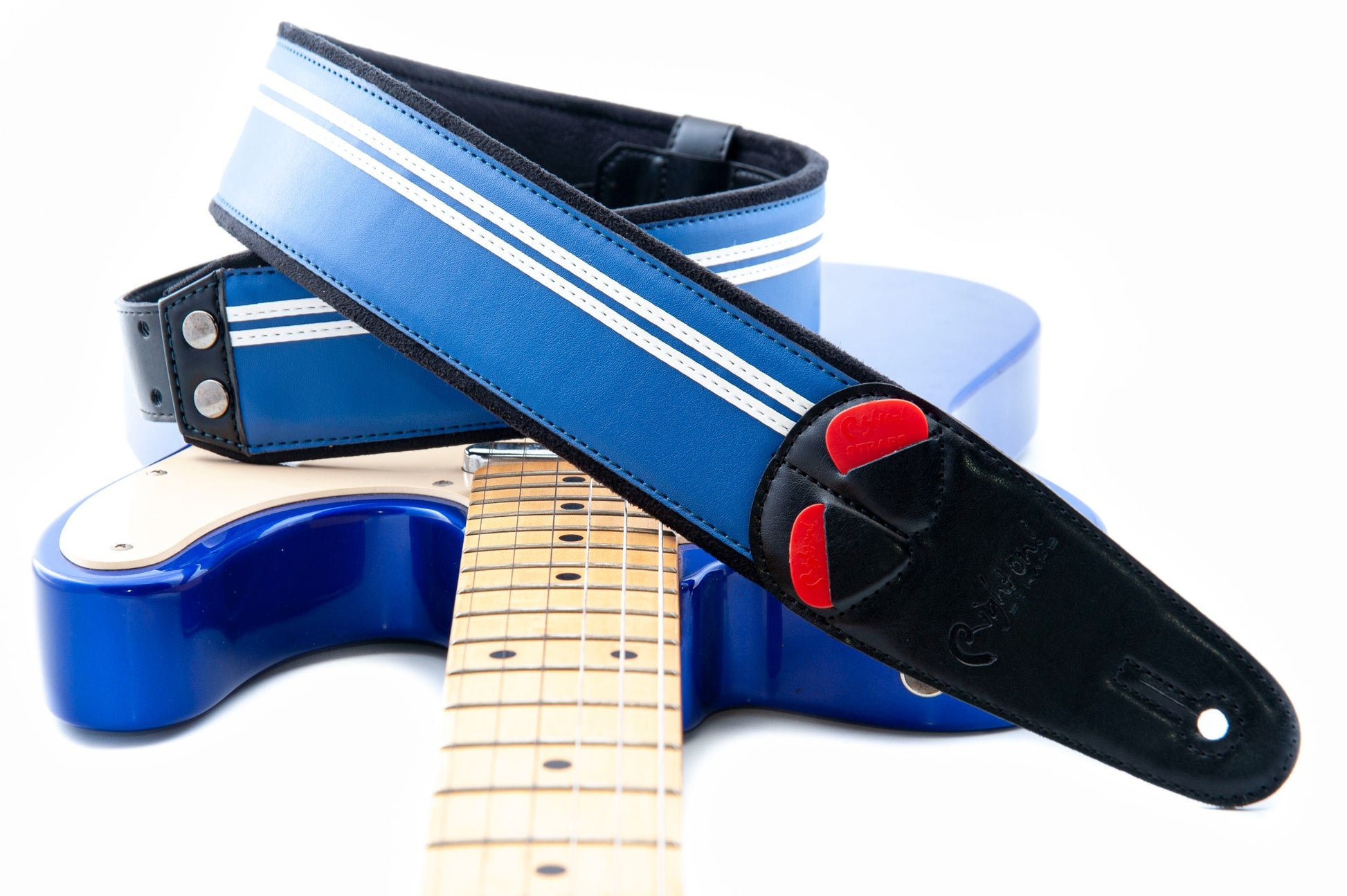 The Race strap has a classic design that reminds the old racing cars, and vintage colors, vintage guitars, speed, checkered flags, straight lines. Simple, smart and vegan strap.