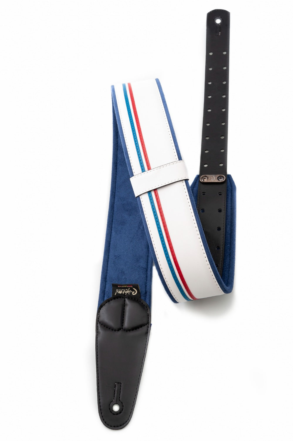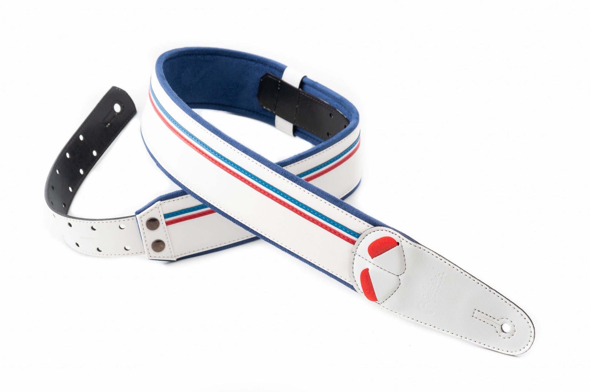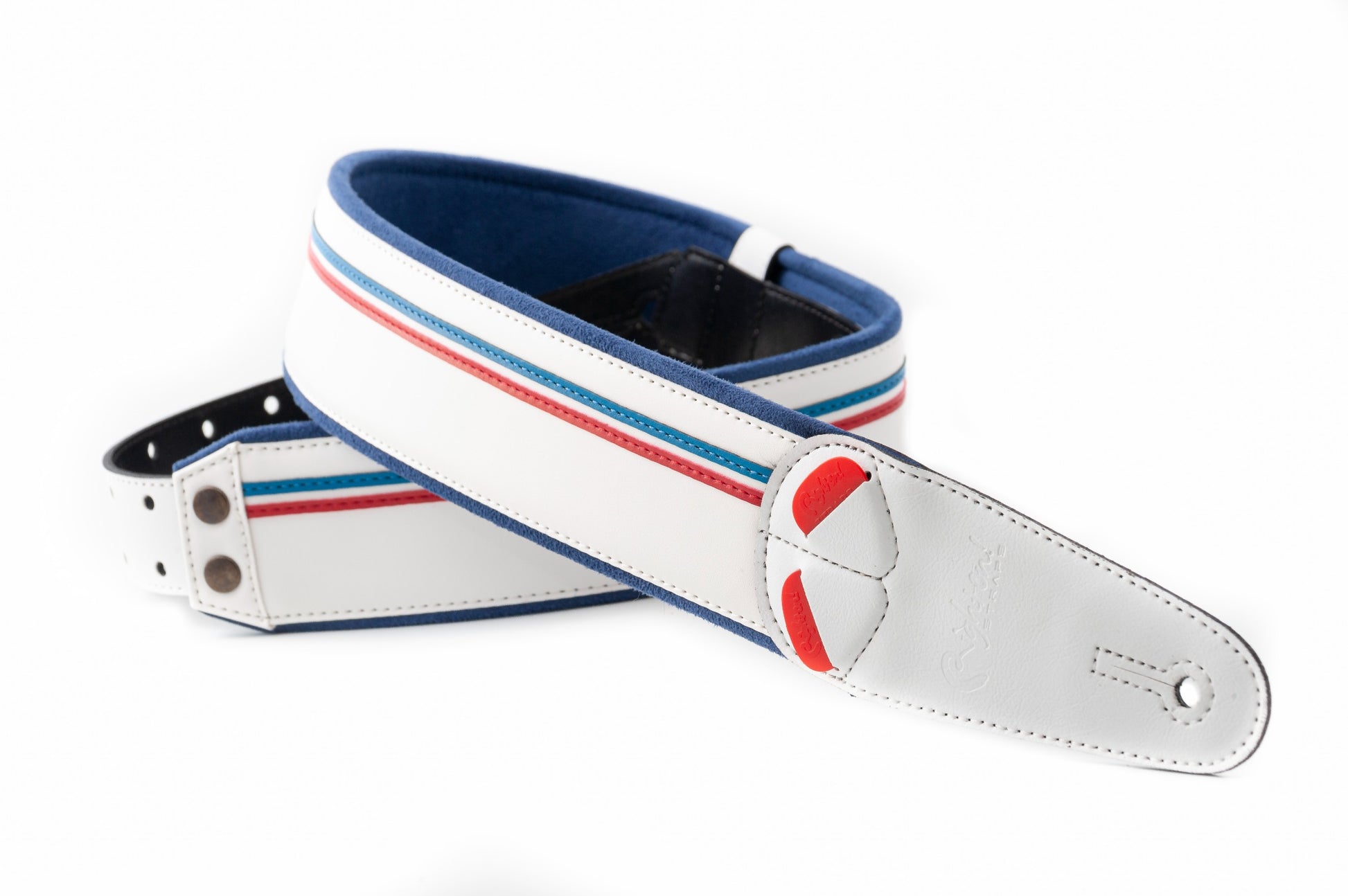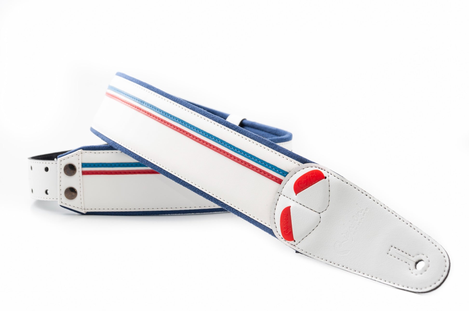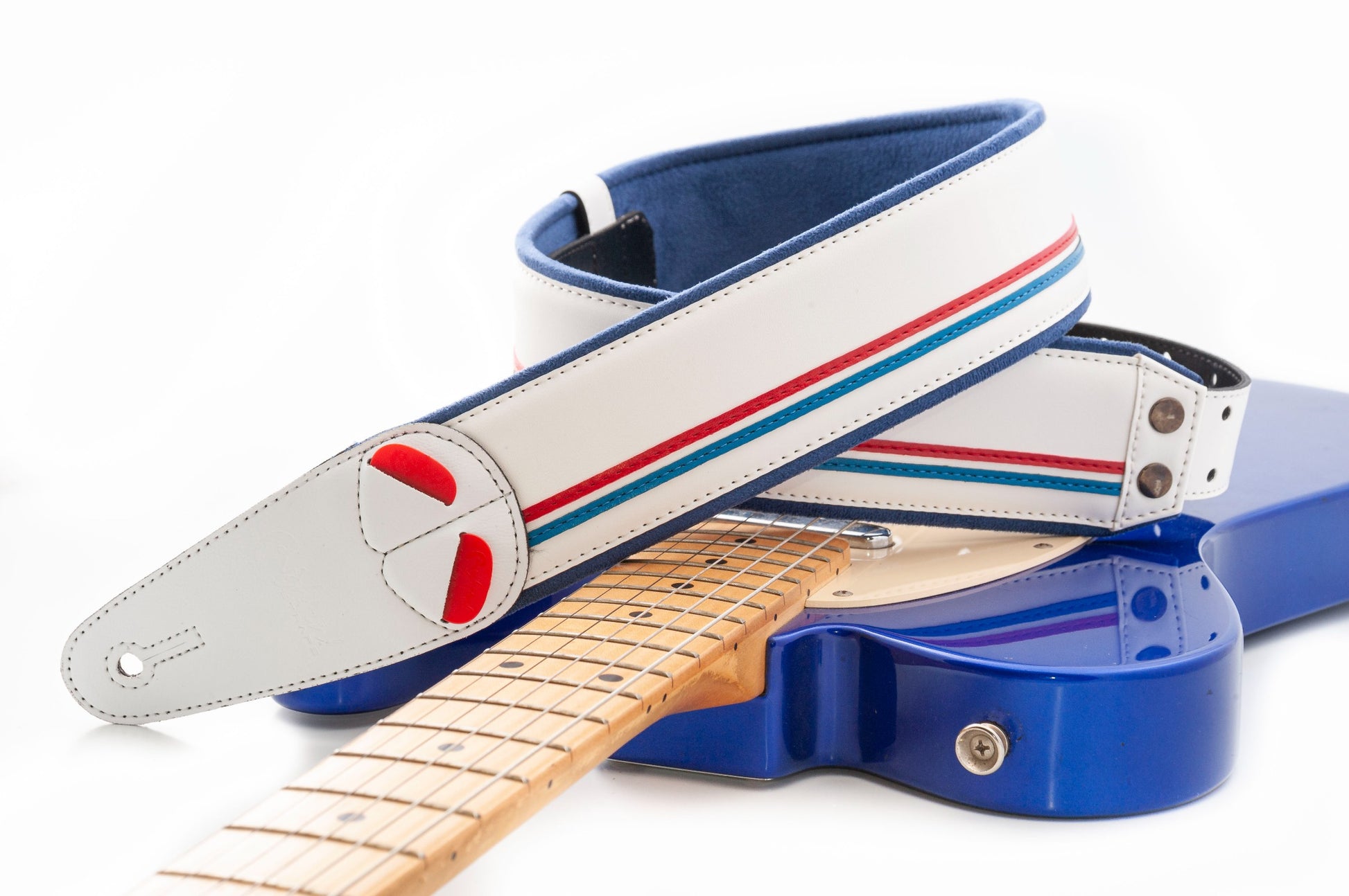 The Race strap has a classic design that reminds the old racing cars, and vintage colors, vintage guitars, speed, checkered flags, straight lines. Simple, smart and vegan strap.