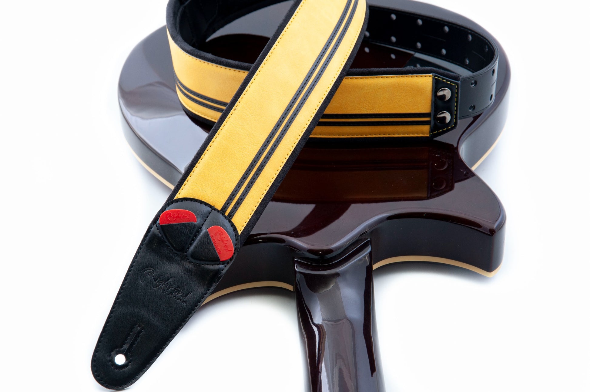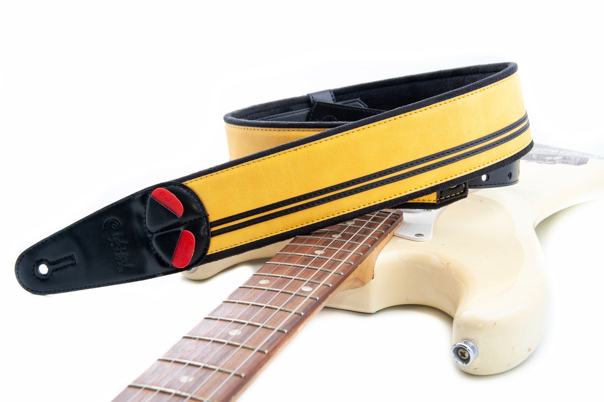 The Race strap has a classic design that reminds the old racing cars, and vintage colors, vintage guitars, speed, checkered flags, straight lines. Simple, smart and vegan strap.